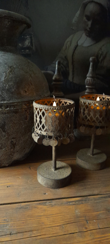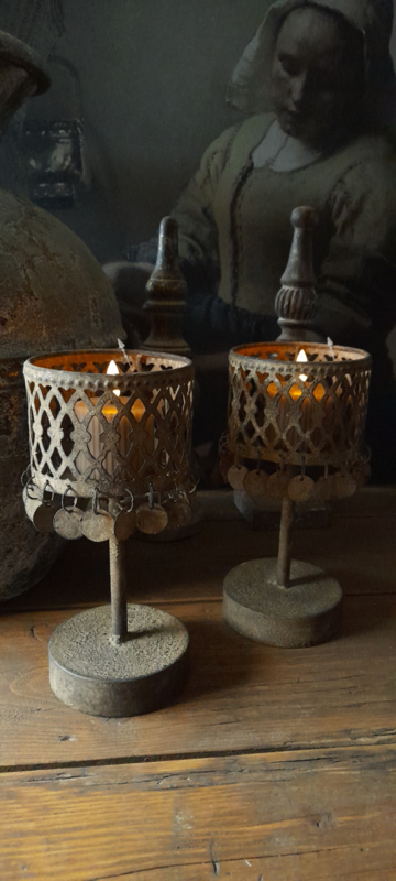 Stoer sfeerlichtje op voet voor waxinelichtjes.