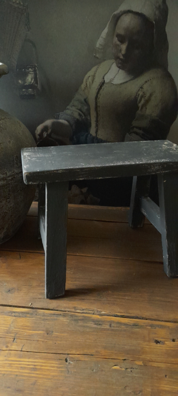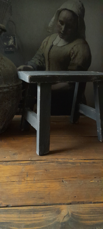Stoere houten grijze kruk voor in je vensterbank.