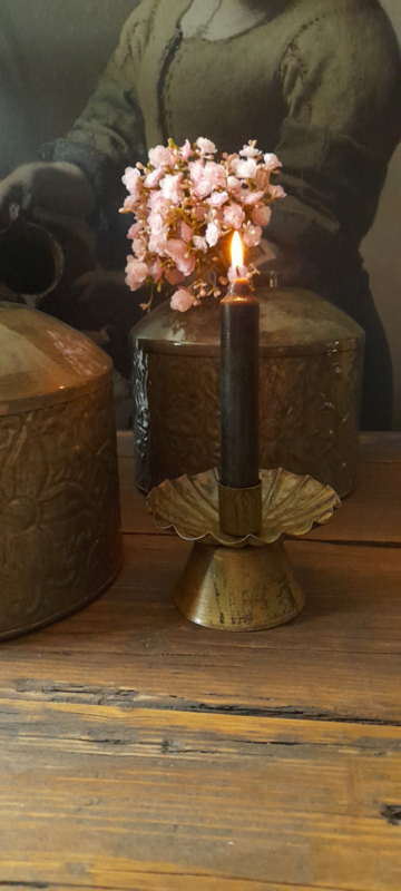 Kandelaar antiekAntieke kandelaar met geschulpte rand.Superleuk in combinatie met de metalen vazen...Hoogte 11 cm.