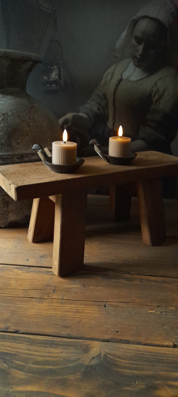 Vensterbank kruk grootStoer zwaren houten vensterbank kruk.De kruk is 55 cm lang , 20 cm hoog en 15 cm breed.
